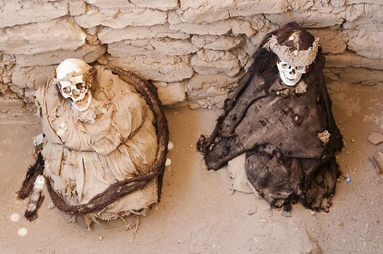 Luego continuaremos hacia el cementerio de Chauchilla se encuentra a unos 30 km de la ciudad de Nazca sobre la margen derecha del valle Las Trancas. Es el único cementerio en el Perú que permite apreciar las momias en sus tumbas originales que han permitido reconstruir la historia, el ambiente, la vida cotidiana, los usos y las costumbres panteístas de esta civilización tragada por las arenas del desierto peruano. Es uno de los más grandes con una longitud de 2 kilómetros, aquí veremos 12 tumbas, podrá observar las construcciones originales de tumbas, momias, cerámicas y textiles con una antigüedad aproximada de mil años. Usted podrá ver tumbas individuales y colectivas; podremos observar el proceso de momificación que los antiguos Nazca usaron para conservar los cuerpos.