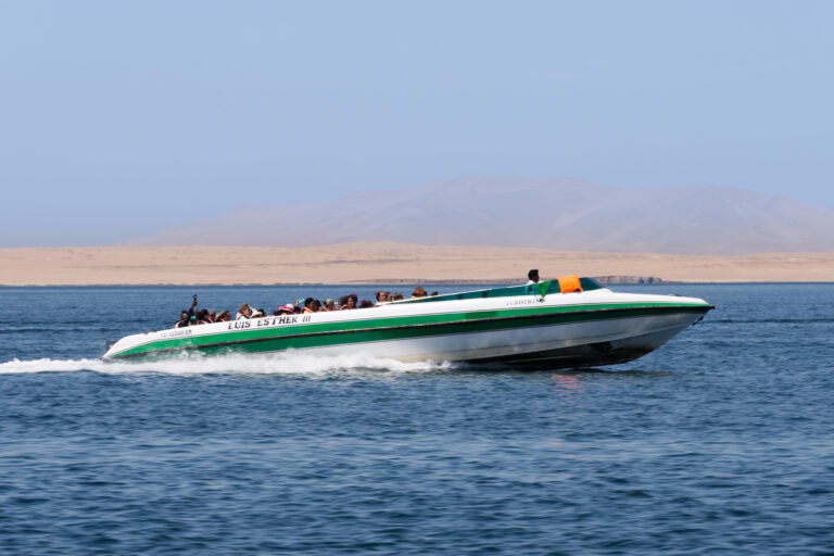 A su llegada a Paracas le estaremos esperando en la estación de buses para posteriormente trasladarlos a nuestras oficinas donde serán cordialmente recibidos por nuestro equipo de trabajo el cual se encargará de asistirle para que pueda tomar el tour de Las Islas Ballestas. Nos dirigiremos a pie hacia el muelle donde abordaremos nuestro deslizador con 02 motores fuera de borda que nos conducirá a las maravillosas Islas Ballestas, el santuario silvestre más importante de la costa peruana. A 15 minutos de iniciada la navegación haremos nuestra primera parada en El Candelabro, un importante geoglifo representativo de la cultura Paracas. Continuaremos nuestra navegación alrededor de 20 minutos más hasta alcanzar a las diferentes formaciones rocosas que conforman las islas. Aquí observaremos a los lobos marinos, pájaros bobos, pelícanos, pingüinos de Humboldt y otras aves marinas que hacen vida en las islas mientras nuestro guía bilingüe va explicando todo lo que hay que saber de las islas durante todo el recorrido. Al regresar de las islas, aproximadamente a las 10.00 am dispondrá de un breve tiempo libre ya que a antes de las 11.00am debe dirigirse a nuestras oficinas nuevamente para tomar su transporte a la ciudad de Ica.