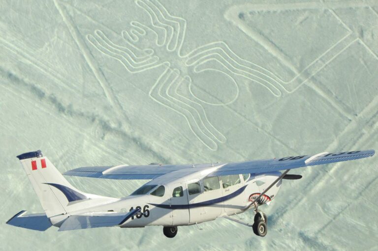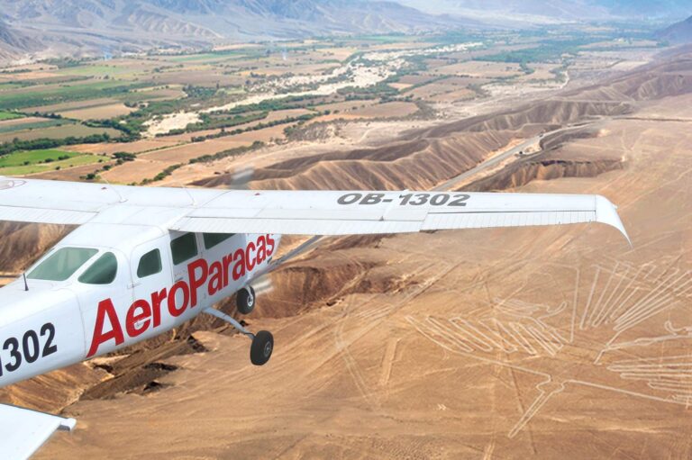 El segundo día de nuestra aventura, luego del desayuno, nos trasladaremos al Aeródromo Maria Reiche para sobrevolar las Líneas de Nasca, el vuelo tendrá una duración aproximada de 35 minutos durante los cuales observaremos los enormes geoglifos en las Pampas de Nasca; dibujos lineales de animales, pájaros y figuras geométricas, dibujados en el desierto, que sólo pueden ser apreciados desde el aire y que son consideradas Patrimonio de la Humanidad. Al finalizar su sobrevuelo será trasladado en el momento oportuno a la estación de bus.
